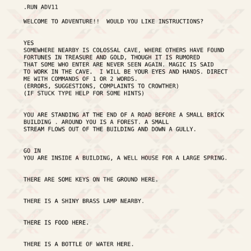 التعليمات التي تظهر على الشاشة من لعبة Colossal Cave Adventure لعام 1976 للمخرج Will Crowther.