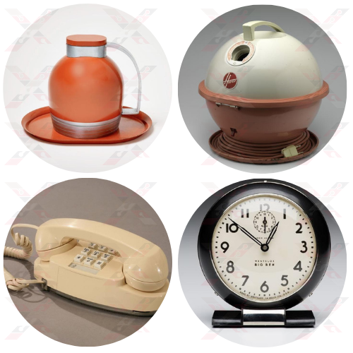 بما في ذلك قطار القرن العشرين الفاخر المحدود؛ الجزء الداخلي لطائرة أيزنهاور الرئاسية؛ هاتف الأميرة؛ وسيارة John Deere Gator متعددة الاستخدامات - التصاميم التي حددت جمالية عصر بأكمله.